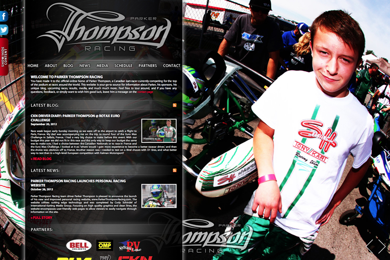Parker Thompson Racing team driver Parker Thompson is pleased to announce the launch of his new and improved personal racing website, www.ParkerThompsonRacing.com. The website utilizes cutting edge technology and was completed by Cody Schindel of International Karting Media Group. Focusing on high quality graphics and clean lines, the website encompasses user-friendly web pages to allow viewers to easily navigate through information on the site.