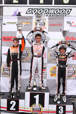 PSL Karting Mini Max drivers were the class of the field in Goodwood. Starting off with a 1-2-3 qualifying effort, with Gianfranco Mazzaferro on pole, Alex Murphy right behind, and US driver Matthew Thomas in third, the trio made quite the impression right from the start. Saturday’s final race saw Murphy grab the win over Thomas. Sunday saw Mazzaferro again on pole and Murphy in second, with Thomas in fourth. The final however would see the three PSL teammates sweep the podium, with Mazzaferro taking the victory, Murphy still in second and Thomas improving to third.