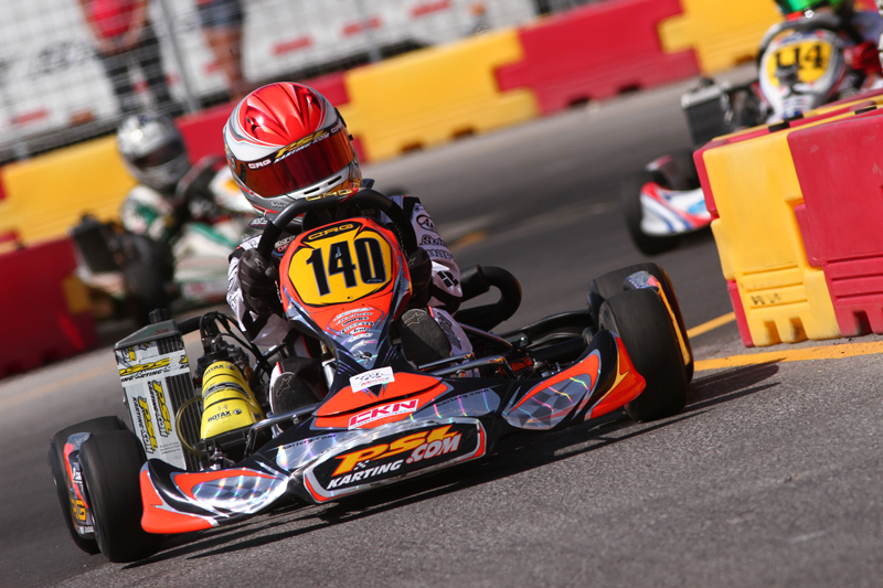 Coming off his Brazilian national title, 2012 Florida Winter Tour Mini Max champion Pedro Cardoso would be back in action with Team PSL Karting this past weekend. While not in contention for any titles, Cardoso would be looking to add strong finishes to PSL’s tally at the famed street race. Fighting from the back of the pack in Saturday’s Coupe du Quebec final, the young gun added a second place podium finish to his stellar results from 2012. Getting more accustomed to the temporary layout by Sunday, Cardoso clocked second in qualifying, and then went on to take the prefinal victory. A close final race saw Cardoso make a return trip to the second step of the podium to complete his weekend.