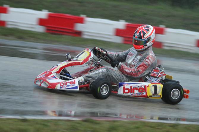 At the start of the final, the rain was steadily falling, making the conditions very treacherous. Growing up in conditions like these, Charlie Eastwood was expected to do well, and he did. Coming from the last row to the top ten in one lap was just a start as he began his march to the front. At the point, 2009 Senior MAX World Champion Luke Varley (United Kingdom) was excelling in the conditions and moving away from the pack.