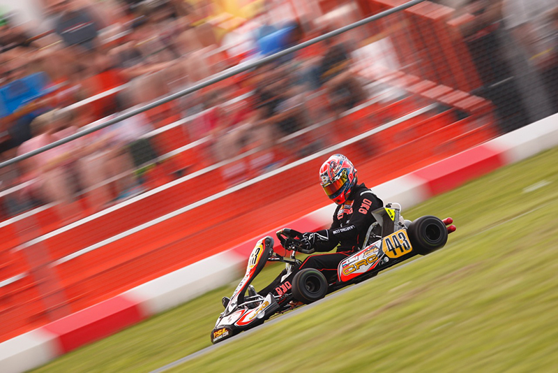 Kingsley was then on a tear Sunday. Claiming pole position and the prefinal win, Kingsley then went on to score another clean sweep with his main event victory. Adding to his success, the rising talent also broke the Goodwood Kartways track record by more than fourth-tenths. Bizzotto would again suffer disappointment, as a strong start of third in qualifying led to another DNF this time with an electrical failure. The Netherlands Milan Dontje would recover from a DNF in Saturday’s final to claim the second step of the podium on Sunday, putting PSL/CRG 1-2 on the day.