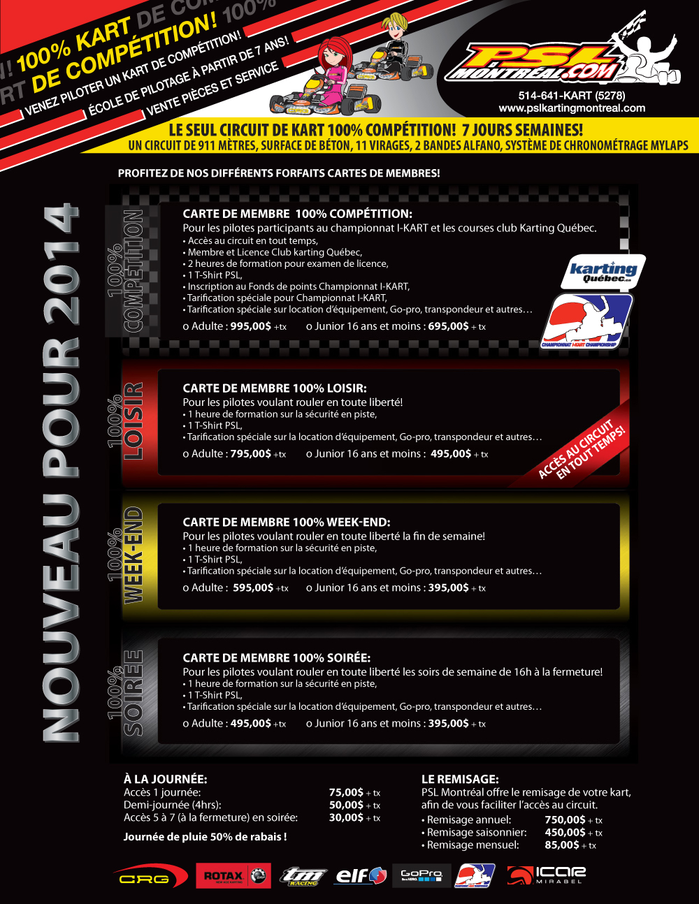 I included the events calendar and the information on the ROK CUP Québec that is making is debut with our I-KART championship! Don’t forget the I-KART championship is the evolution of our club races! Read more on http://www.pslkartingmontreal.com/ecole/i-kart2014/