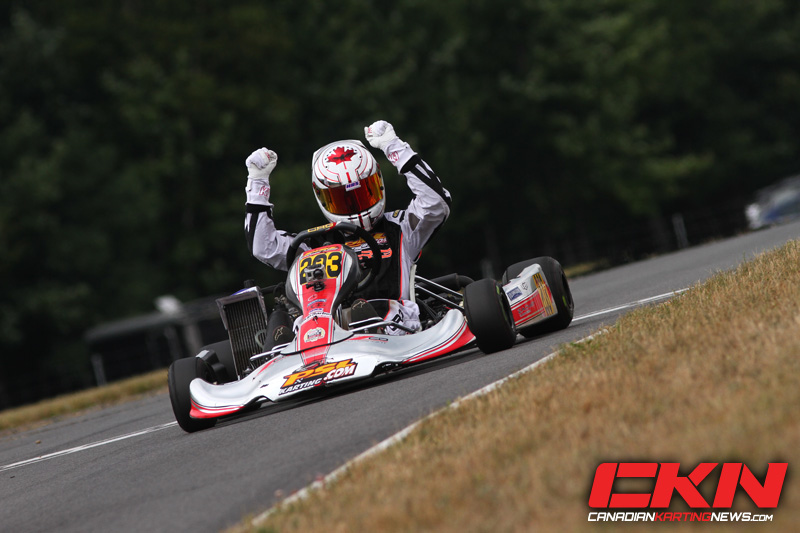 After some opening lap jumbling, Jeffrey Kingsley (SRA Karting/Birel) erupted into second place, with teammate Nicholas Dore (SRA Karting/Birel) in tow. The two would hold off a charging Samuel Fontaine (PSL Karting/CRG) to take complete the podium. Rounding out the top-five was Tommy Lamaire-Ouellet (PSL Karting/CRG).