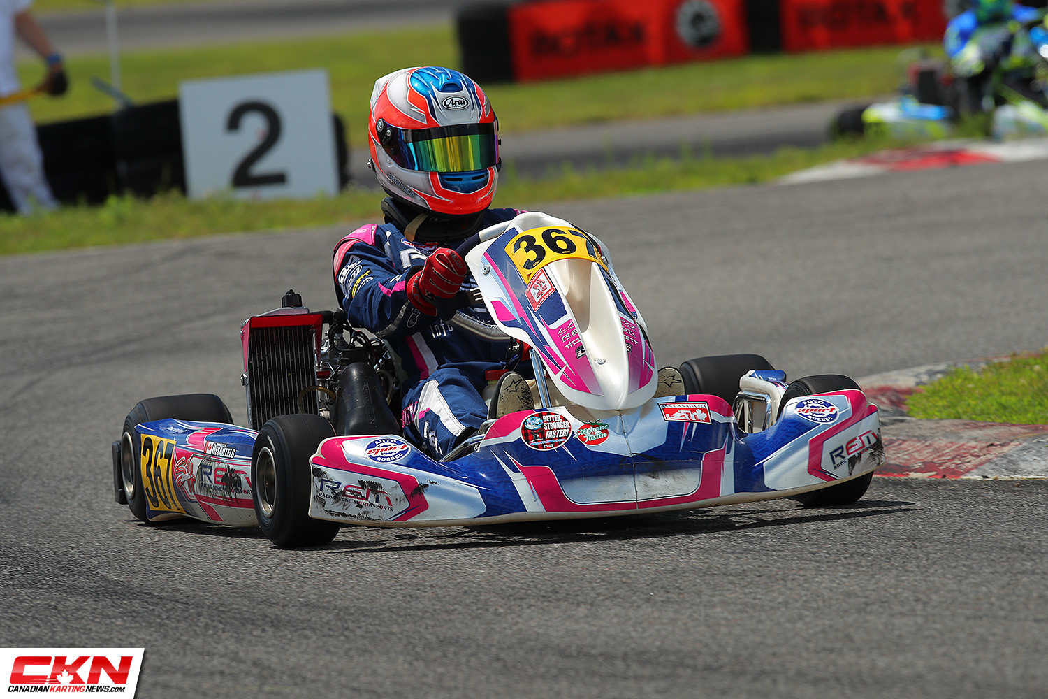 In the Rotax Max divisions, each class has a two-driver showdown going for the championship. Junior Max has Callum Baxter (BirelART) up against Maude Grenier (BirelART) with 146 points separating them. Marie Soleil Labelle is third but is too far back to have a chance at the title.