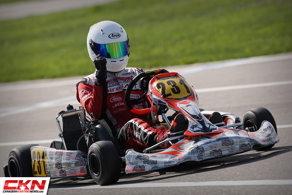 On Saturday, Levi Schmidtke was on a mission and he delivered in an impressive way in Rotax Junior. The defending Alberta Shootout Champion in the category, paced the day each time Rotax Junior hit the track and he capped it off with a 3.3 second victory in the Final.