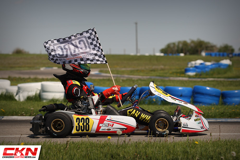 On Saturday, Evan White was set to finish third, but like his Rotax Senior race, he was forced to withdraw a few laps before the finish. This moved John Kwong onto the final step of the podium.