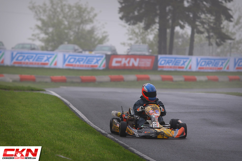 Rain, clouds, wind and cold. It wasn’t the nicest day at Goodwood Kartways for the first day of the Pfaff Kartsport Cup, but that didn’t dampen the spirits of those on hand.