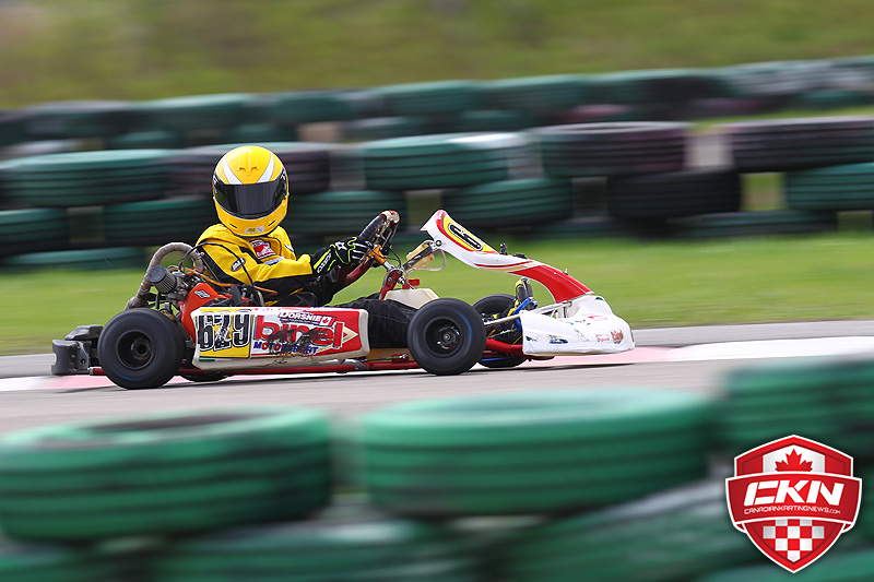 On track there was no stopping the trio of SH Racing drivers in the rain or dry as early season favourites Samuel Lupien and Raphael Forcier along with Thierry Cote controlled the lead in every on track session, with Cote claiming the pole-position in Qualifying. In the rain they were just as dominant, with Lupien setting the fastest lap en route to the race win over Forcier and Cote. However some confusion as to the jetting in the new Rotax EVO carburetors in SH Racing camp unfortunately led to the three being excluded from the results.