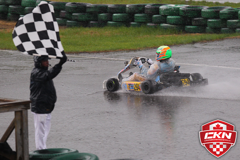 It was a soggy ending to the opening weekend of the 2015 Coupe du Quebec Championship at SRA Karting as after dark clouds loomed all day long, they finally opened up during the Finals and forced the back half of the classes to switch over to rain tires.
