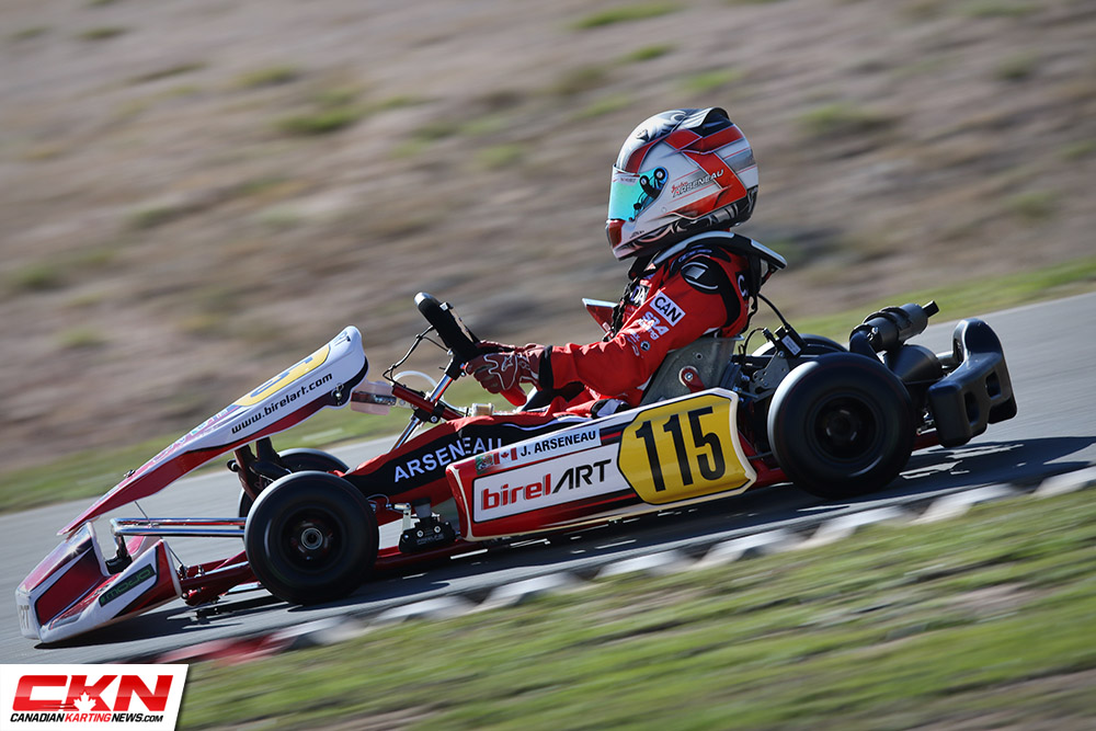 Like Paniccia, Justin Arseneau is the only Canadian in this category this week, taking part in Mini-Max. He showed great pace in the practice sessions and on the first lap of Qualifying, posted the fastest out-lap to set the initial pace. While the times dropped, so did Arseneau’s and following the 8-minute session he ranked fifth overall, a superb result for the smallest driver by far in the category this week.