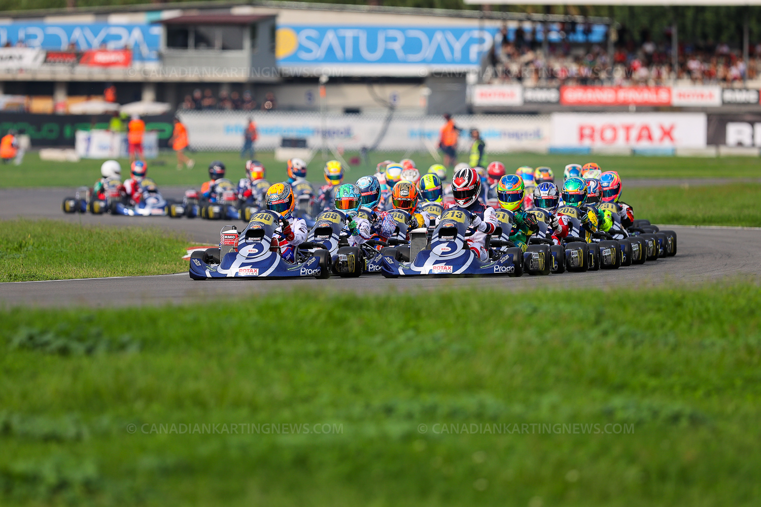 In the premiere Rotax MAX class at the RMC Grand Finals, Team Canada had four in heat one. Putting three drivers inside the top twenty at the end of Heat A vs B, the #434 of Olivier Bedard led the way, finishing 13th as Lucas Pernod and Gianluca Savaglio crossed the line close behind in 17th and 18th, respectively. Unfortunately, Arnaud Sabourin is fighting a huge uphill battle after finishing 26th in his first wheel-to-wheel action.
