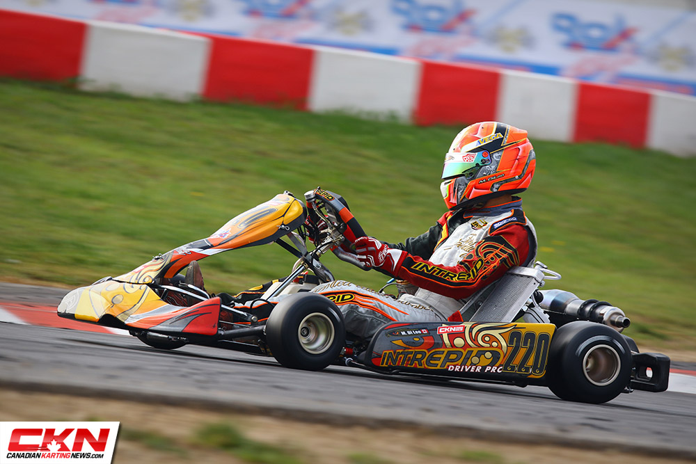 After learning the South Garda Karting circuit the weekend before, Di Leo debated throughout the practice sessions on which chassis to run. Testing both a prototype Intrepid Kart and an OTK Exprit, Di Leo waited until the final practice before opting for the Intrepid, the brand he is most familiar with. It was also an opportunity for Di Leo to use the hand front brake system, something that took him some time to get used to.