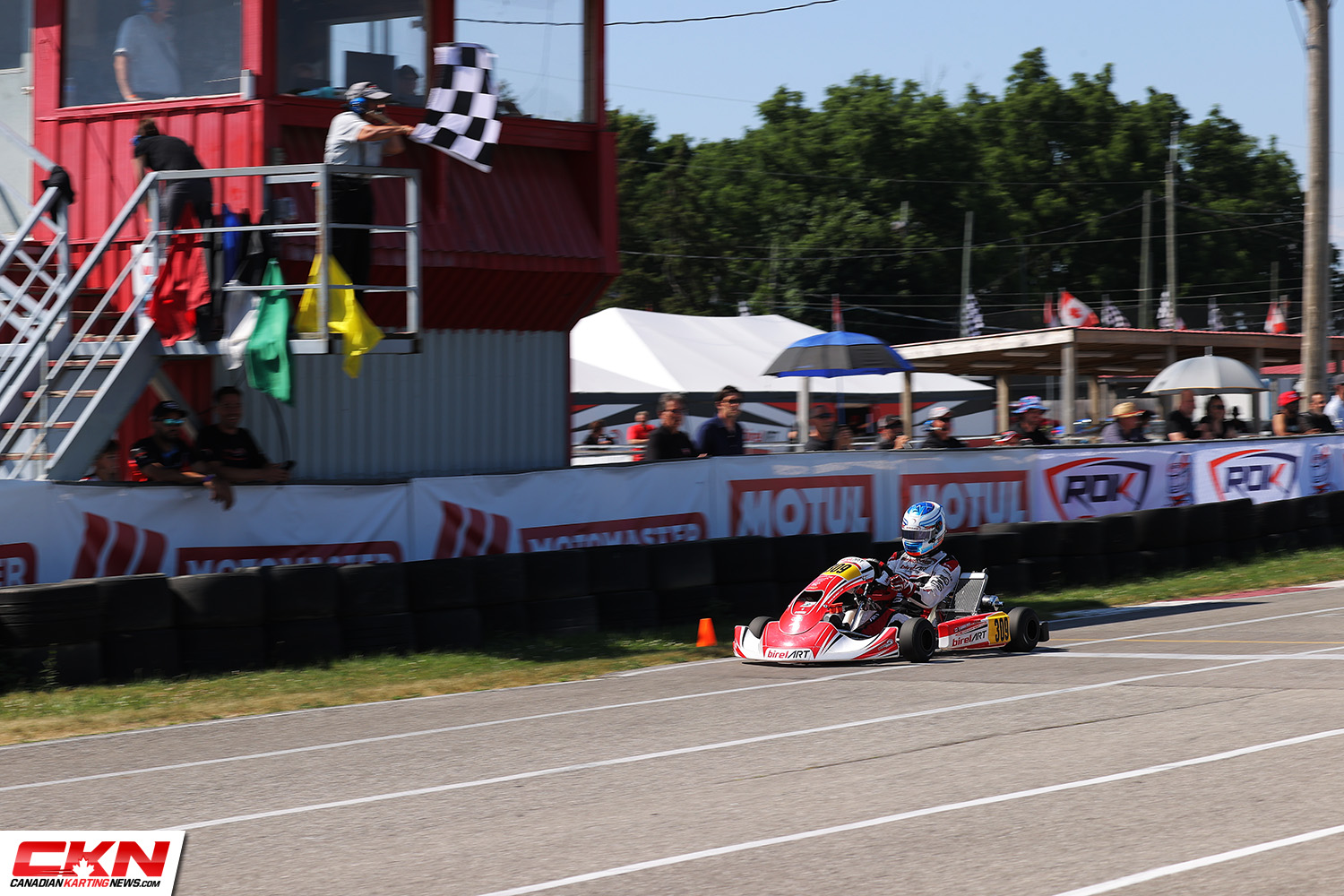 Some bumping and banging on the opening laps saw Woods-Toth move Lowe for second place, while Ryan MacDermid (PRO/CL Kart) received a punt from Nolan Bower (NBM/Exprit) that sent them both spinning in corner three.