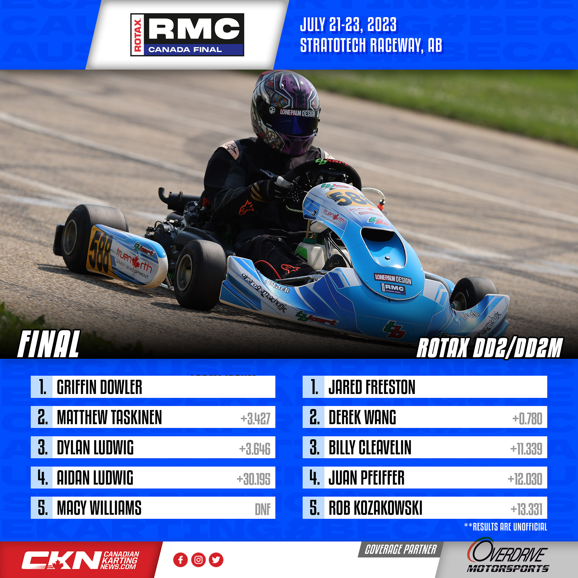 In the Rotax DD2 Final, the race came down to Griffin Dowler (Apollo/Gillard) and Matthew Taskinen (TAG/CRG) after provisional polesitter Macy Williams (Apollo/TonyKart) had to withdraw early in the race with a flat tire.