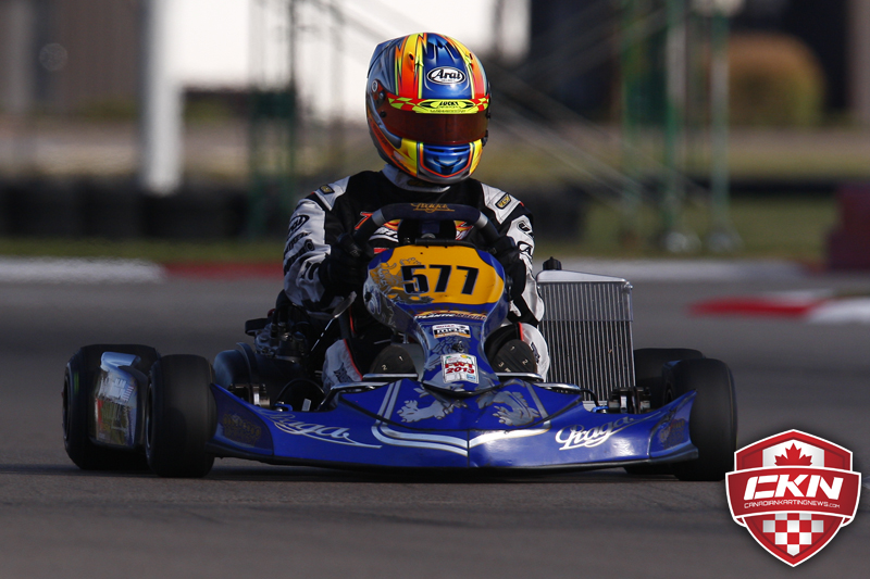 In Rotax DD2 Masters Qualifying, the four of the top-five drivers are all aboard the Rotax Grand Finals spec Praga chassis, having already qualified for the Grand Finals. American Champion Alan Rudolph posted the fastest time, with Brazils Fernando Guzzi second and American Mike Jones third. Christophe Adams (Birel) of Belgium was fourth with American Scott Falcone fifth. Canadians Stuart Clark (Maranello) and Francis Mondou (Praga) were sixth and eleventh respectively.