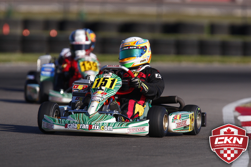 There has been plenty of exciting racing in Mini-Max this weekend, giving us some insight to how close it will be at the Grand Finals. American Mathias Ramirez (TonyKart) scored his second win in the morning heat, fending off fellow Americans Sting Ray Robb (Kosmic) and Nick Brueckner (Birel). Two of our three Canadians fell victim in the first corner as Griffin Dowler (TonyKart) and Roman DeAngelis (TonyKart) were forced to the sidelines, as Michael d’Orlando would drive to eighth.