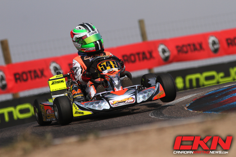 In Rotax Mini-Max local driver David Rafailov (CRG/USA) utilized his home-track advantage to grab the pole-position, posting a time of 56.931 seconds around The Track at Centennial. Just narrowly missing the top spot, Victor Prato (Intrepid/Venezuela) will start the heat races in second, posting a 56.951, while Michael Benyahia (Kosmic/USA) was third only four-thousandths behind Prato. Rounding out the top five were the Terife brothers, with Santiago (TonyKart/Venezuela) ahead of Sergio (TonyKart/Venezuela).