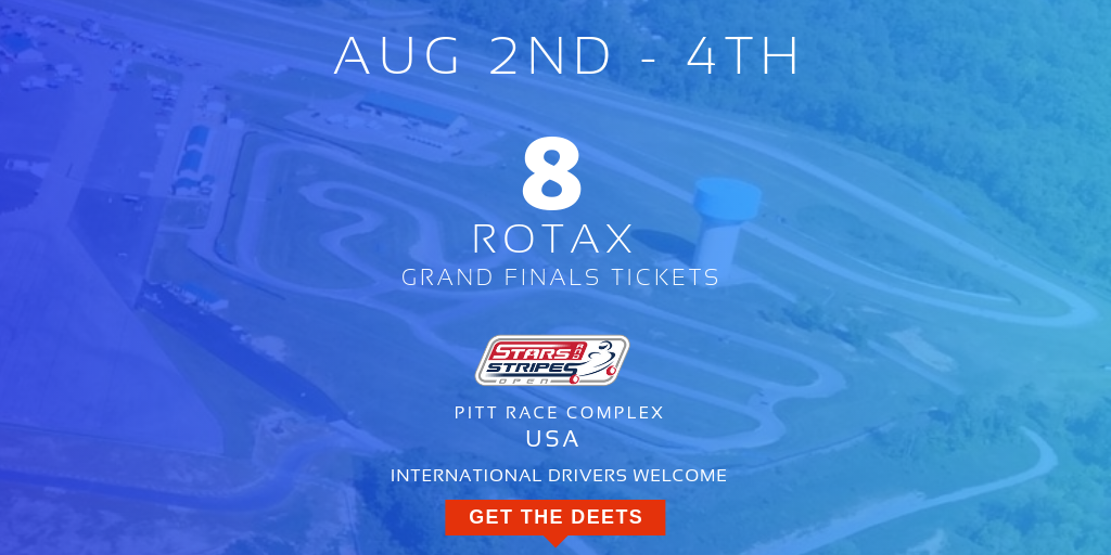Less than sixty days away from the final chance in North America to earn a ‘ticket’ to the 2019 Rotax Finals kicks off at the Rotax Stars & Stirpes Open event held at Pitt Race Complex during August 2-4, 2019. The event will award a total of eight (8) Grand Finals tickets where all categories will be crowning the winners the opportunity to compete during the month of October in Sarno, Italy at what is undoubtedly labelled the Olympics of kart racing (RMCGF)! The event format will follow very similar to the previous Stars & Stripes Trophy event with a three-day on track format with Thursday the week of the event (July 31) being dedicated to material and lottery engine handout and paddock parking.