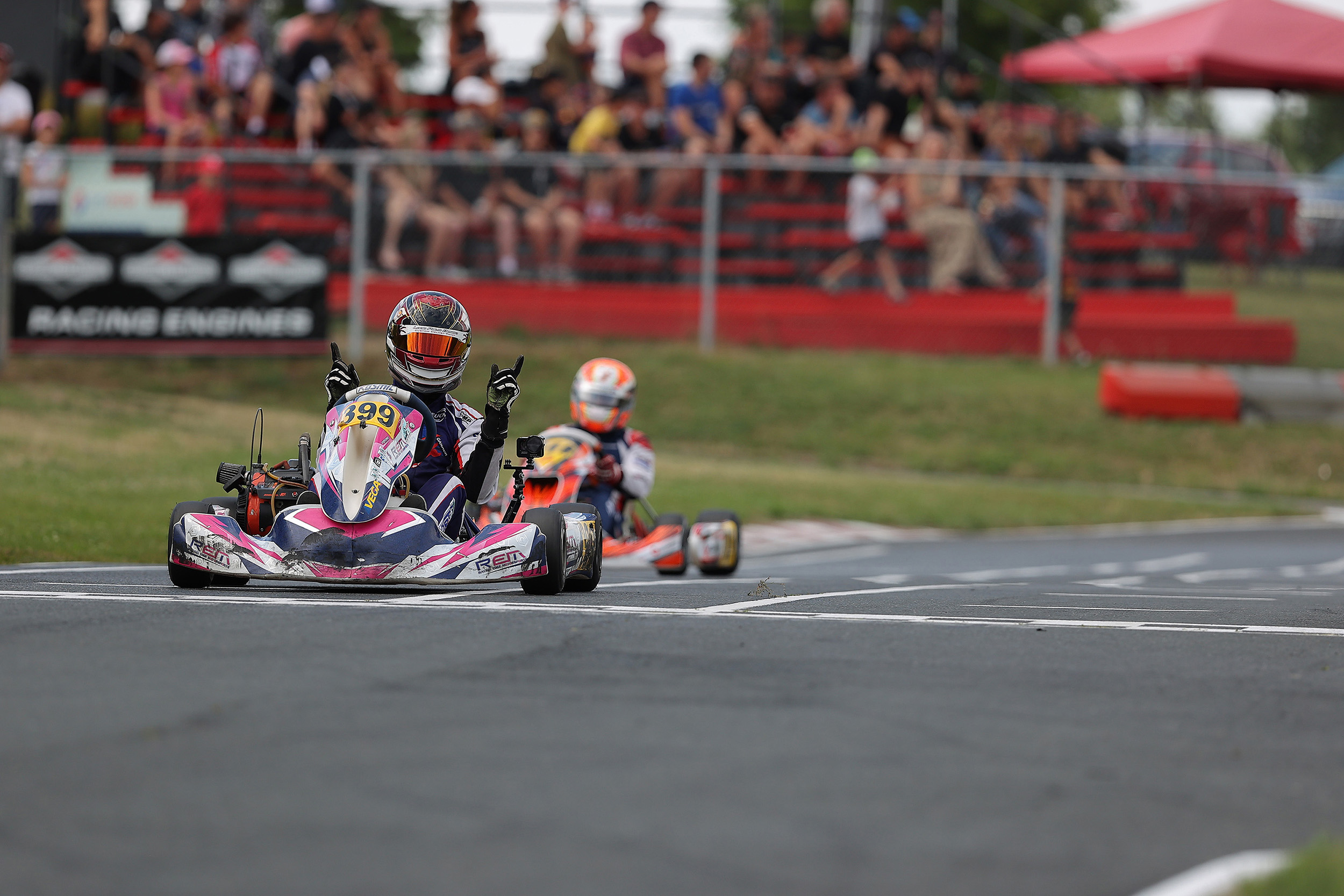 It was a chaotic start that saw karts scrambling everywhere to avoid a number of spinning karts between corners four and five on the opening lap and the action didn’t slow down from there.