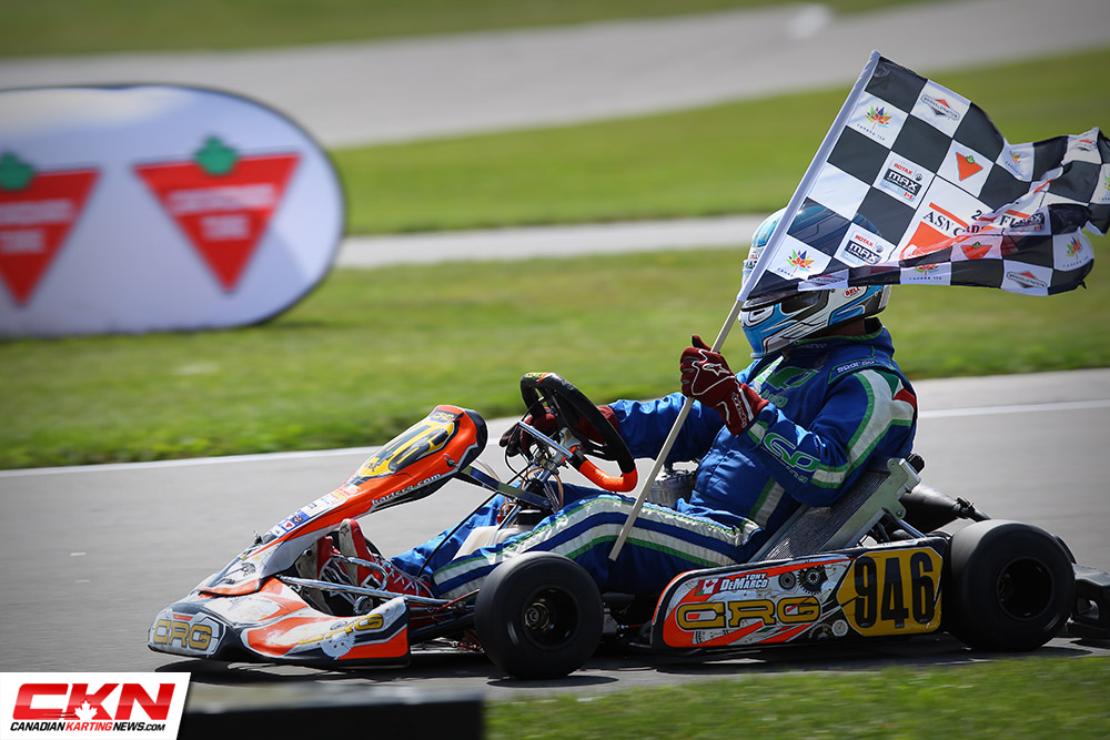 For Serravalle the win was bittersweet as he wasn’t even planning to race the Canadian Championships and instead was going to be in Germany preparing for the upcoming CIK World Karting Championships, but he missed his flight to Germany and in the last minute, entered to race at Mosport. We think it was worth it.