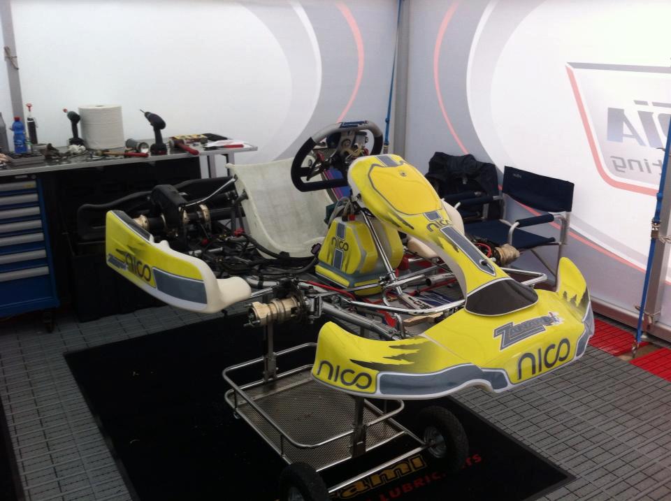 F1 driver Nico Rosberg joined Canadian Lance Stroll under the Scuderia Karting tent for some kart testing at La Conca, Italy. He even asked Lance for some tips. Photo by: Hugo Mousseau