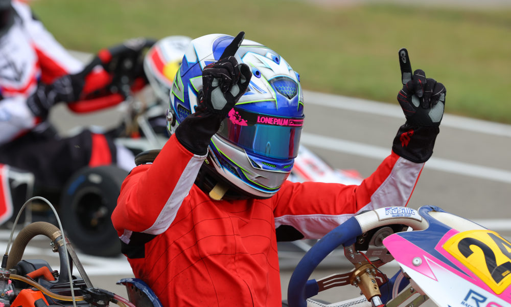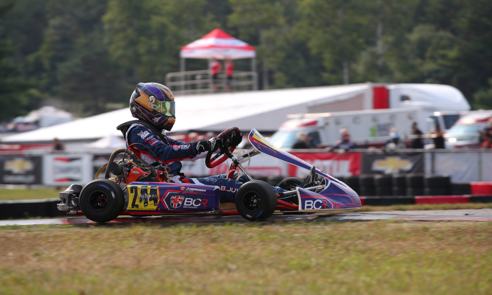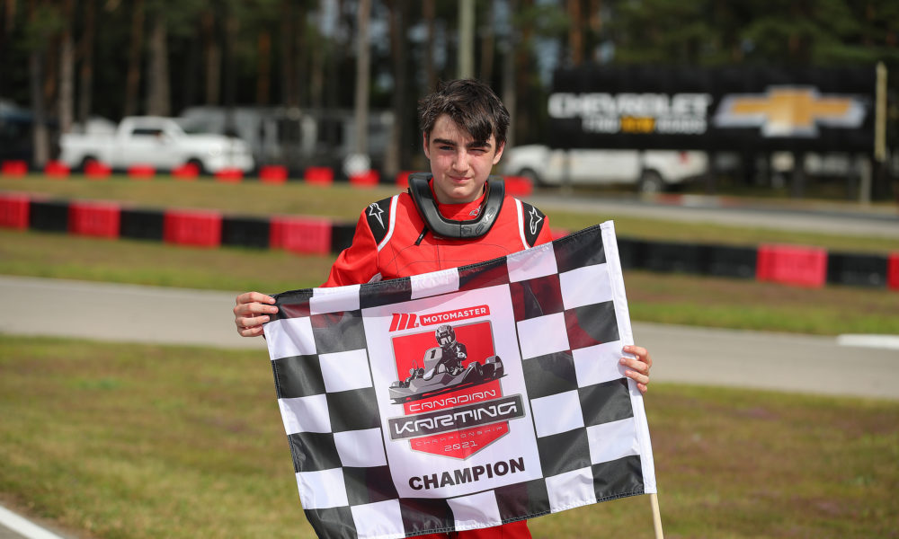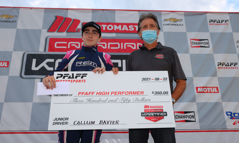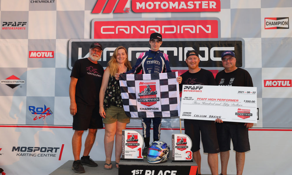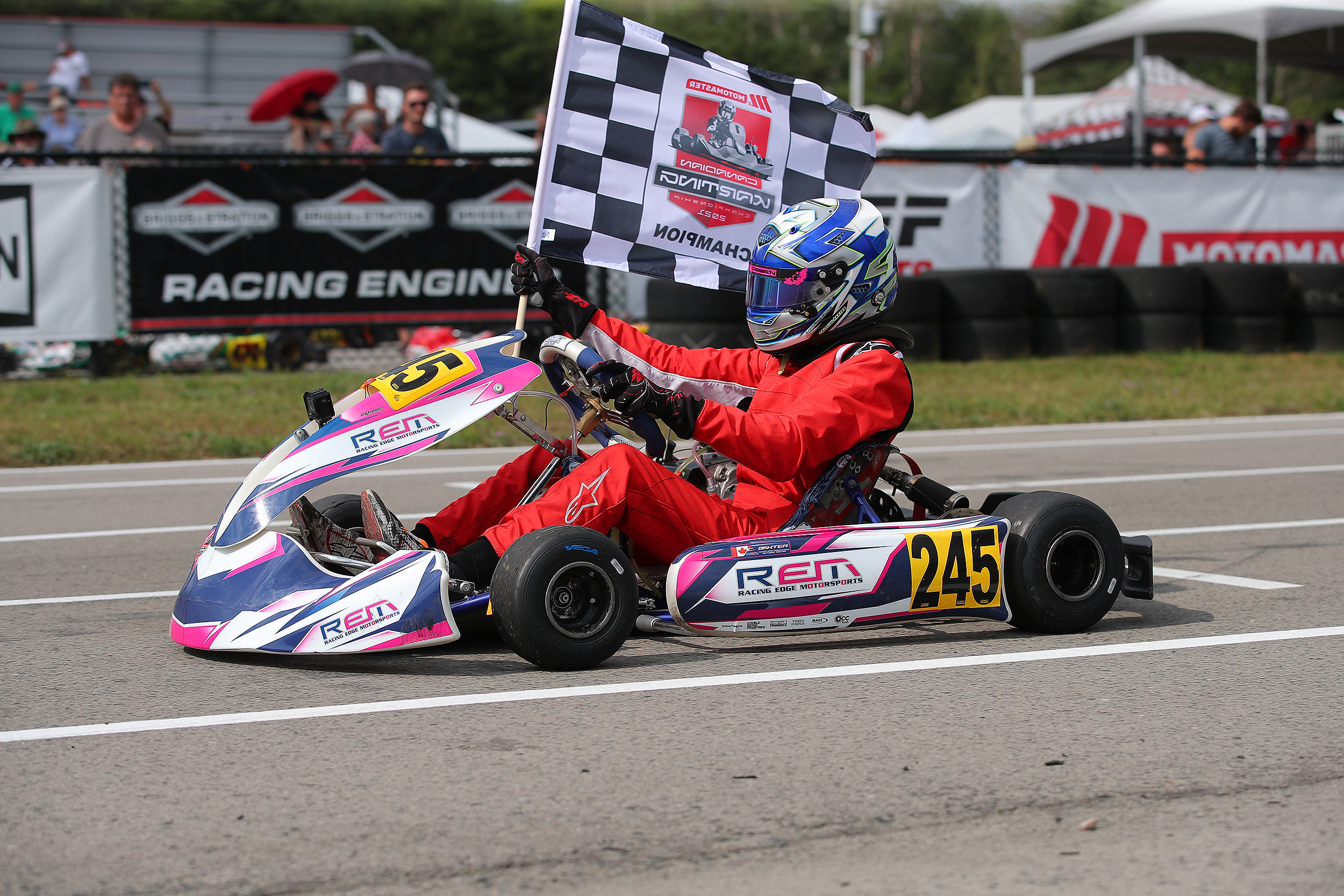 He never let go of the lead from there and celebrated his third Canadian Karting Championship, adding to his Briggs Cadet (2017) and Briggs Junior Lite (2018) wins. He was also acknowledged as the Pfaff Junior High Performer award winner.