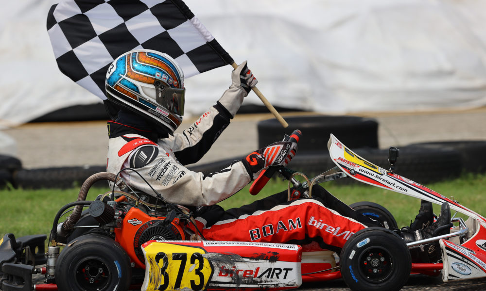 Holding off the master, he was very strategic on his final two laps of the race and in a drag race to the finish line, the win went to Boam by 0.062 seconds. Brutzki won the battle for the final podium step, in which he brought his daughter up with him to accept the KartStars trophy. Ploder had to settle for fourth while Greg Rempel (BirelART) won the intense battle for a distant fifth.