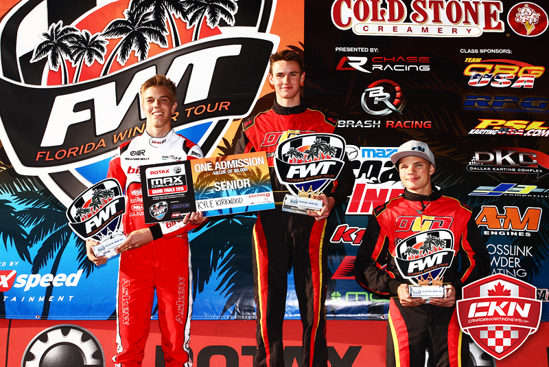 As the laps wound down, so did the action as Szigeti was now in cruise control and just waiting for the checkered flag. Taking the victory in his first start of the season, Szigeti is off to great start to the year. Askew beat Kirkwood to the line but it wasn’t enough for the championship, meaning Kirkwood secured his second FWT title in as many weeks and he will represent the USA in both the ROK Cup International Final and the Rotax Max Challenge Grand Finals.