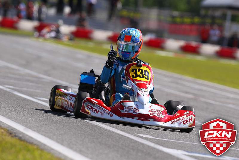 Kirkwood was en route to a perfect run in the heats until a fuel filter issue in heat three forced him to drive one-handed all race long, allowing his OGP teammate Austin Garrison to rank the highest and earn Sunday’s pole-position. Canadian drivers held positions four through eight in the ranking with Gianfranco Mazzaferro (Ferrolati Corse/TonyKart) leading Szigeti, Kevin Monteith (REM/Kosmic), Christophe Paquet (KCR/CRG), and Cedrik Lupien (SH Racing/FA Kart).