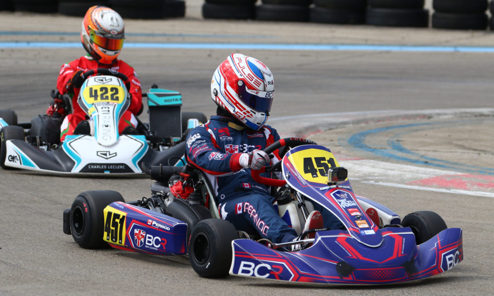 Patrick Woods-Toth is once again showing that he is one of Canada’s best right now. Only a day after winning the MIKA Canada Cup in ROK Senior at Mosport, Woods-Toth was in Rotax Senior action at ICAR. He easily cruised to victory on Saturday, and crossed the finish line on Sunday as the winner, but was disqualified for ignoring the meatball flag.