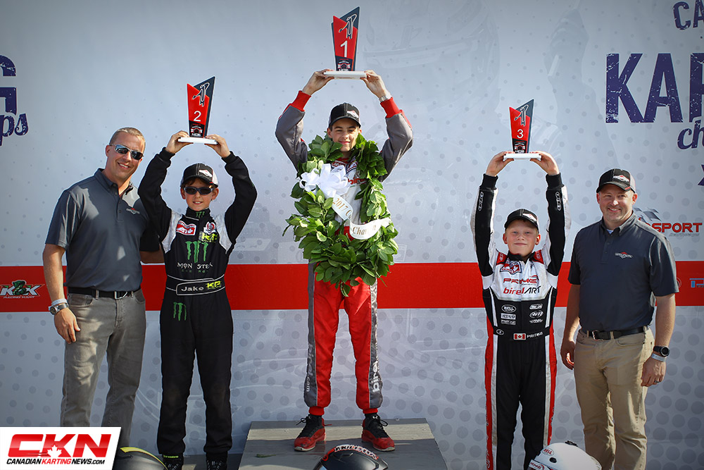 With five laps to go, Pritiko was still leading but Christodoulou was looking for a place to get by as he hounded the race leader. With three to go, he regained the top spot and some jostling spread the front four karts apart. That lasted only a lap and once again they were back together nose-to-bumper.