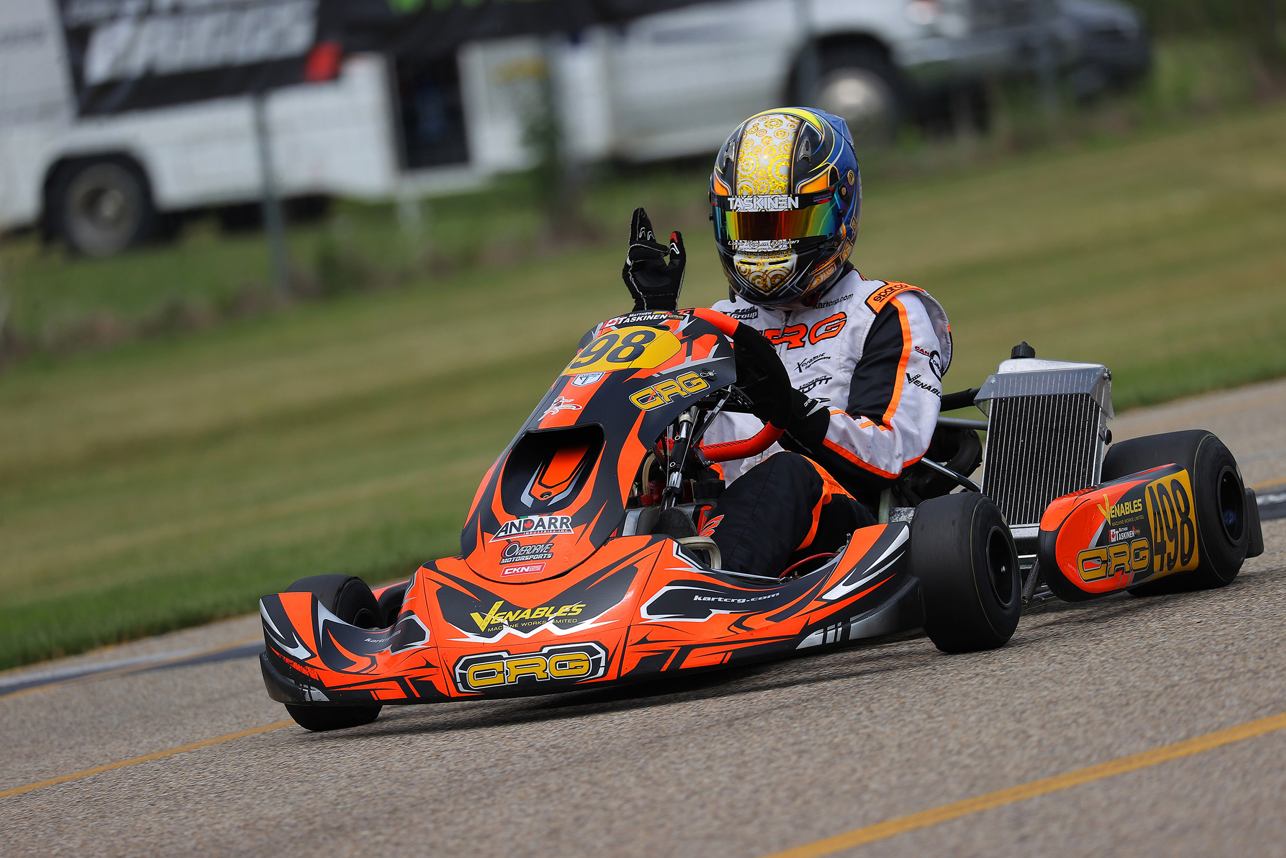 Battling on his home track, EDKRA Rotax Mojo Raceway, for the title with Griffin Dowler (Apollo/TonyKart) in the Rotax DD2 class, Taskinen held an advantage in the standings entering the weekend and he never wavered. Staying on top in every session but one, Taskinen (CRG Canada/CRG) built upon his points total and capped the weekend off with a convincing victory in the Final.