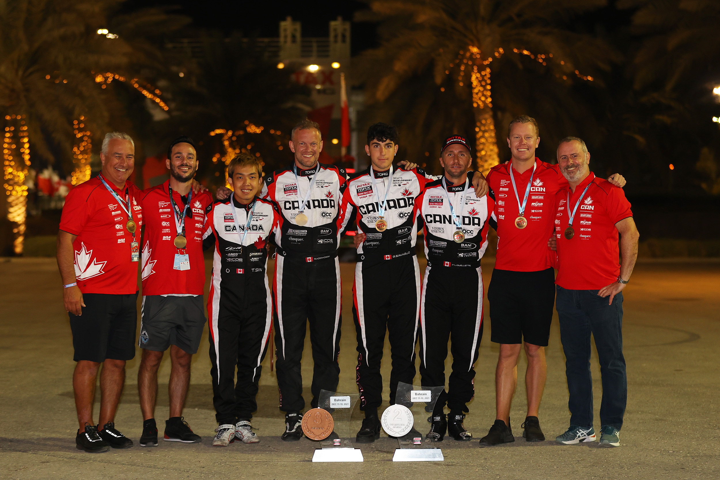 Following a total team effort of results this week in Bahrain, Team Canada was awarded the third-place trophy in the Nations Cup race at the 2021 Rotax Max Challenge Grand Finals.