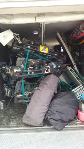 The end result of the CF Racing trailer after a wild ride en route to Rock Island, Illinois