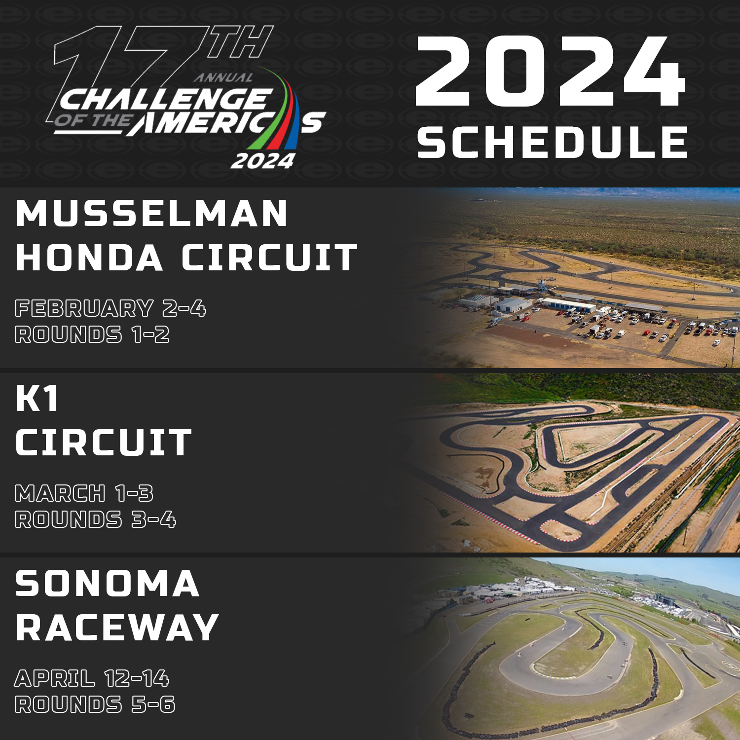 The 2024 season is just around the corner and Challenge of the Americas is continuing the planning stages for the upcoming championship. The 17th edition of the winter west coast series is set for another three weekend events, featuring six rounds of racing between the months of February and April. The locations for the three race weekends have been confirmed for the 2024 Challenge of the Americas.