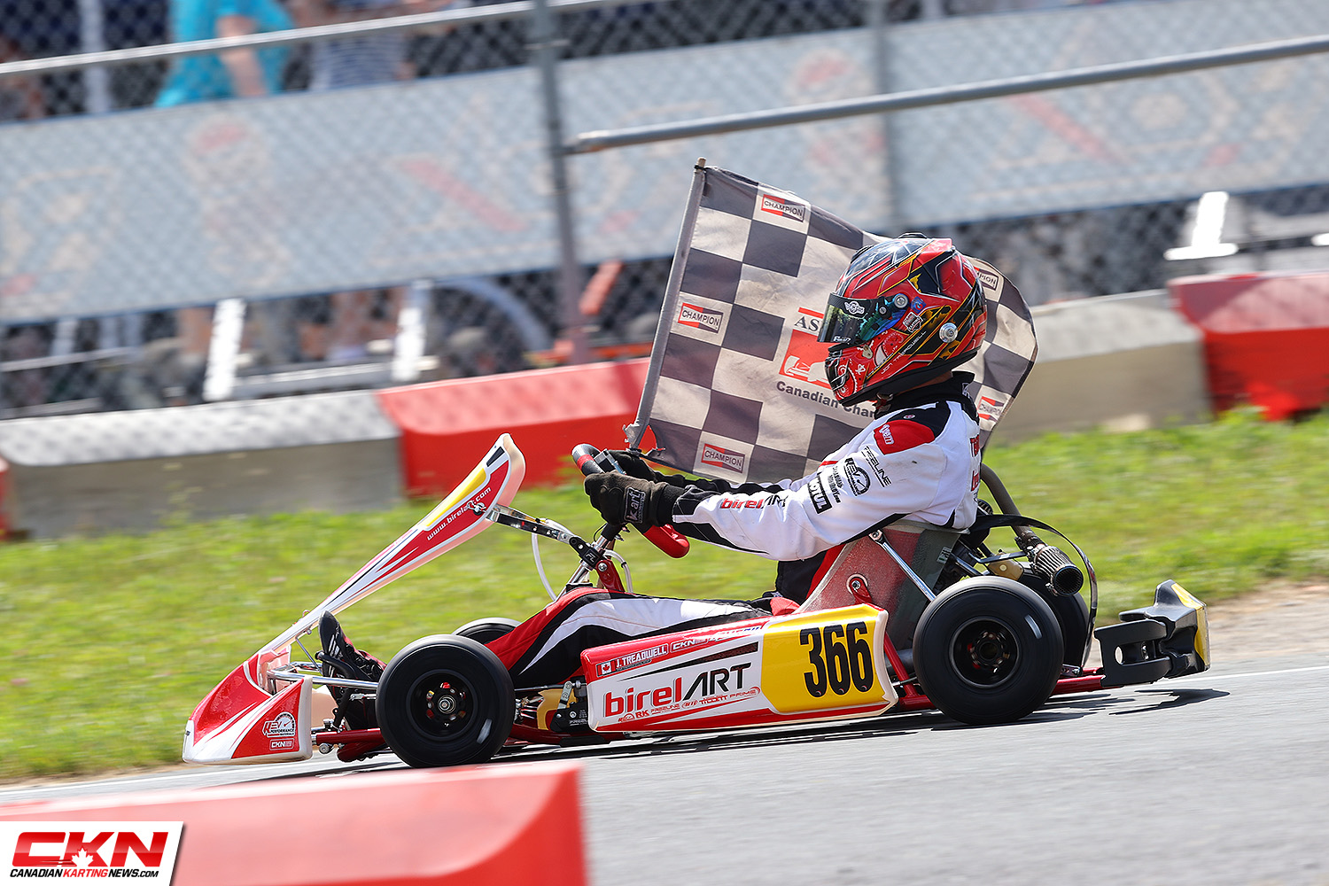 Competing in his second and third races in the last four days, Jonathon Treadwell (BirelART) has an average finish of 1.3 after sweeping both the Briggs Senior and KartStars Senior divisions at the opening round of the KartStars Canada Championship at Goodwood Kartways. It was a stamp of redemption after missing out on victory at the MIKA Canada Day Cup on Thursday by only 0.02 seconds and a near photo finish.