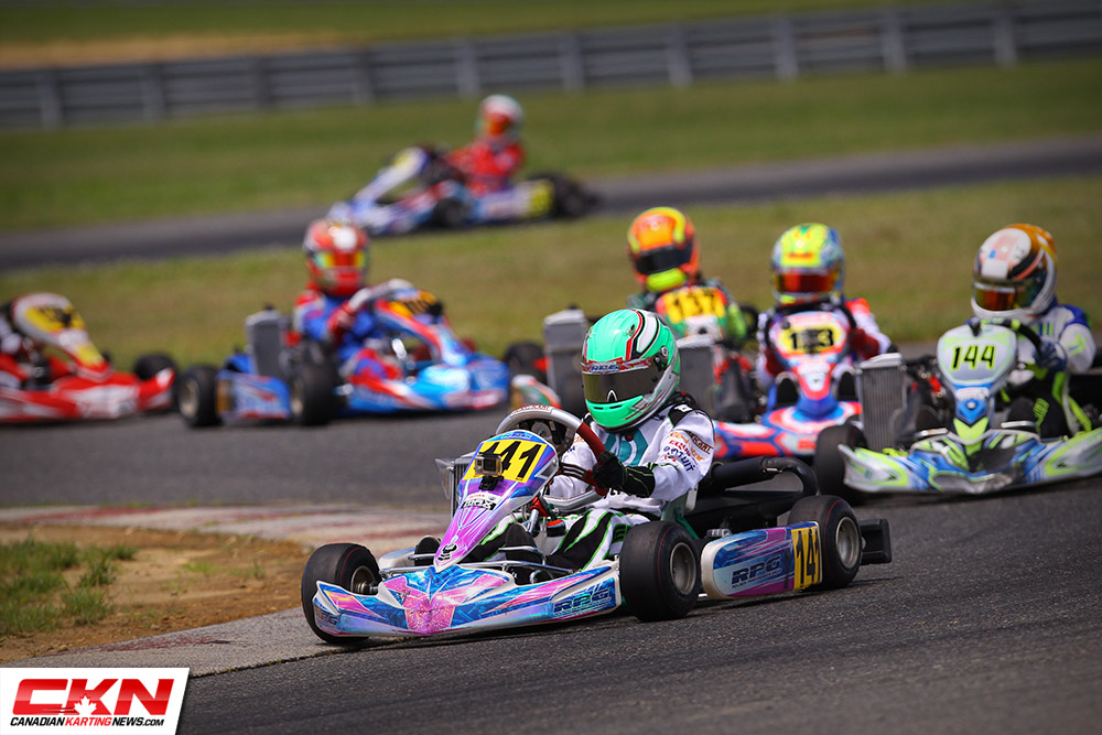 A pack of four emerged quickly after the green flag featuring defending Junior Max National Champion Dylan Tavella, defending Mini-Max Champion Tyler Gonzalez along with Hannah Greenemeier and Arias Deukmedjian.