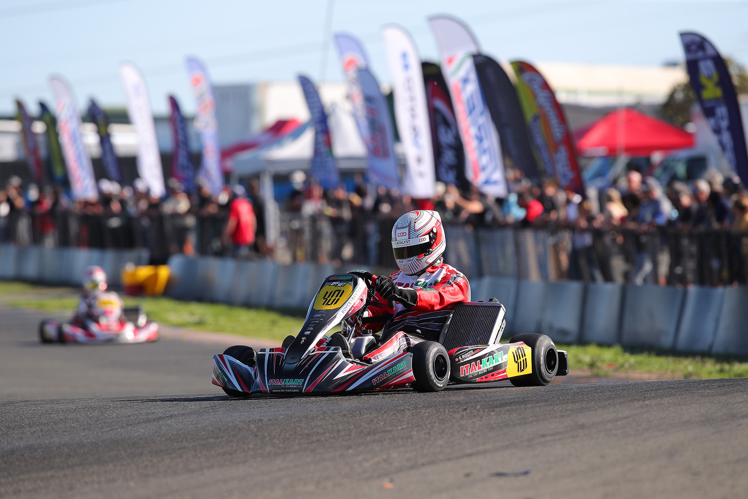 Working with his Italian Motors/ITALKART team, changes were made, including a chassis swap on Saturday night to go for the win.