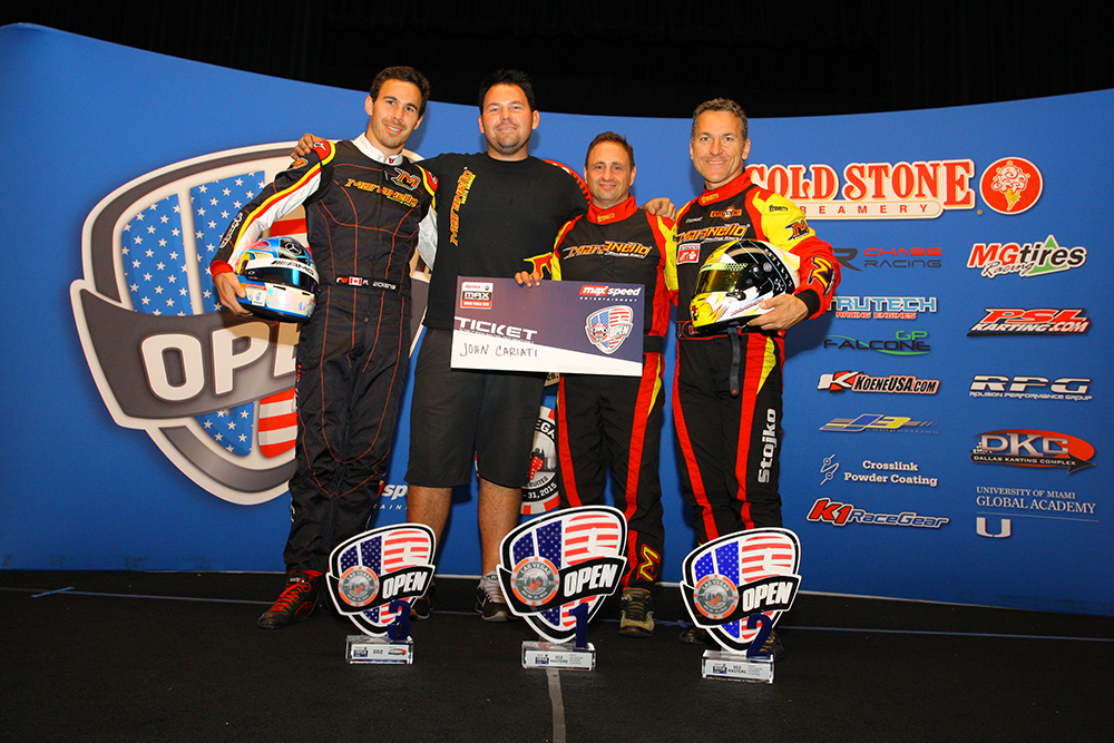 In the DD2 Masters fight, Stojko and Cariati went toe-to-toe for third place until a late race incident between the leaders put both of them in the mix for the win. The activity created a storm of events and when all was settled Cariati was declared the winner with Stojko runner-up making in a Maranello 1-2! For his victory, Cariati earned an invitation to the 2016 Rotax Max Challenge Grand Finals, the first DD2 Masters driver to qualify for the event.