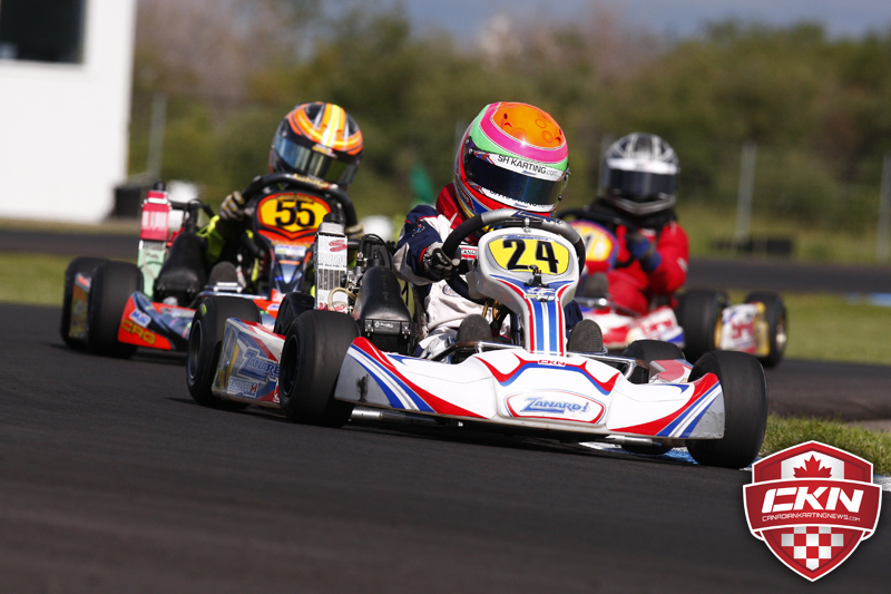 In the Rotax Micro-Max division, only five karts are on the grid, but the racing has been exciting. Quebec’s Tommy Nepveu (CRG West/Zanardi) qualified on the pole-position and did cross first in all three heat races. However a penalty in heat two moved him down to third place.