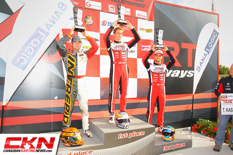 That was all Kingsley needed to score another win while Bizzotto held off Kashak on the final tour to finish second. However it wasn’t enough of a gap in the points for Bizzotto to overtake Kashak in the championship meaning Kashak will join Kingsley and Marco Signoretti on Team Canada at the Rotax Grand Finals.