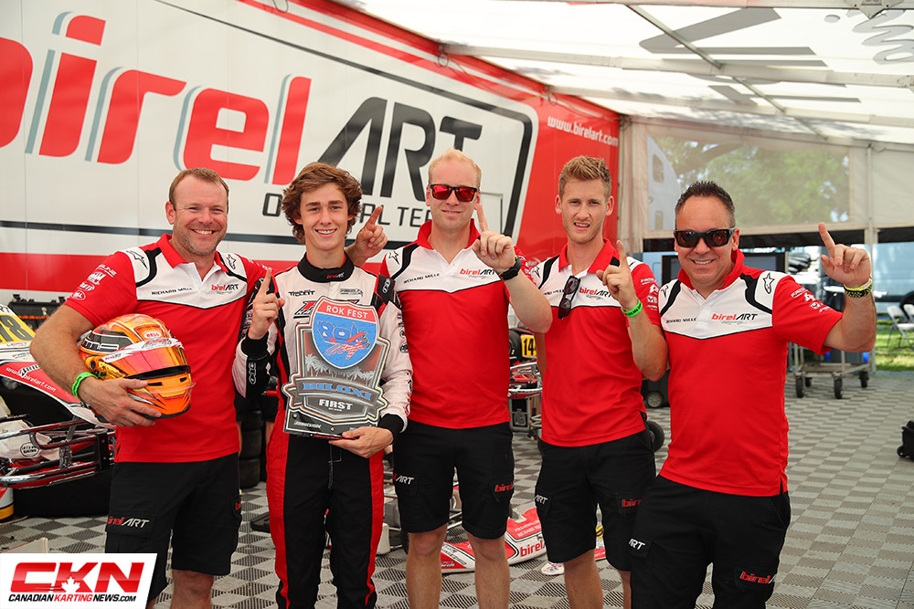 After qualifying in the sixth position, Leist showed speed and patience as he progressed through the heat races towards the main event. Competing with fellow BirelART North America drivers Colby Dubato and Thomas Nepveu, who qualified fifth and seventh, Leist got the best of the field in Sunday’s main event taking the top step of the podium and accompanying ROK International Final ticket. Dubato and Nepveu also showed great pace, each picking up a heat race win, but when the final checkered flag had flown, the Canadian Nepveu was classified in fifth after a small mistake cost him to narrowly miss the podium while Colby Dubato came home tenth.