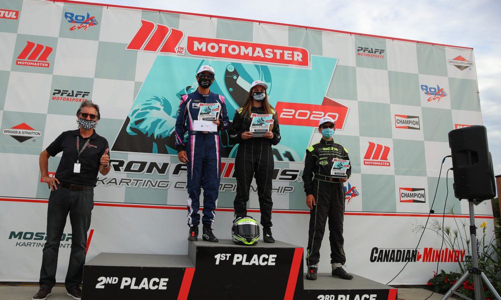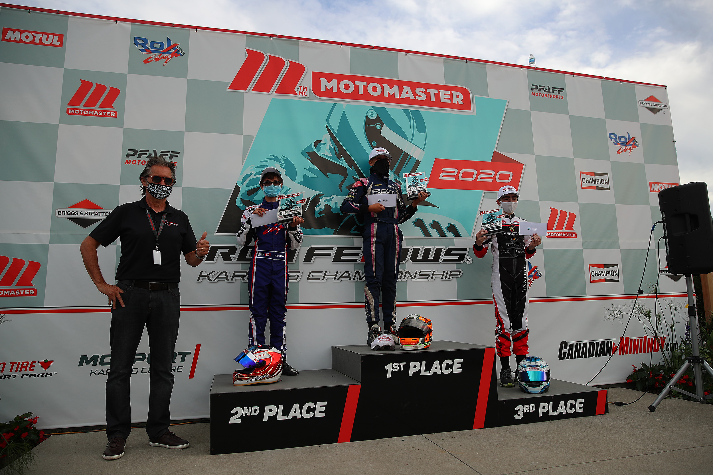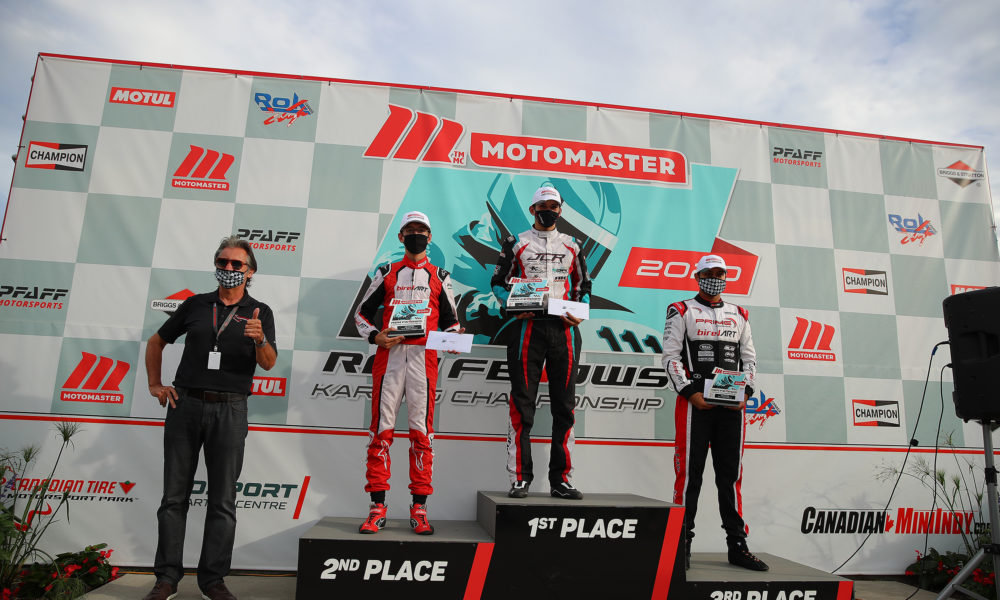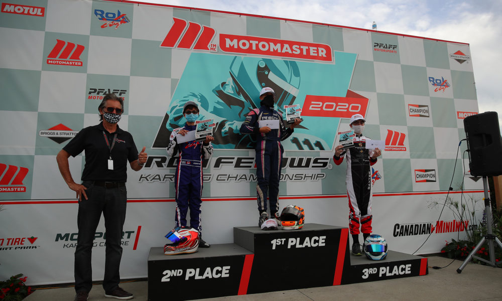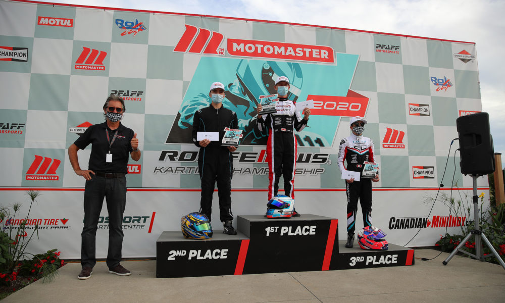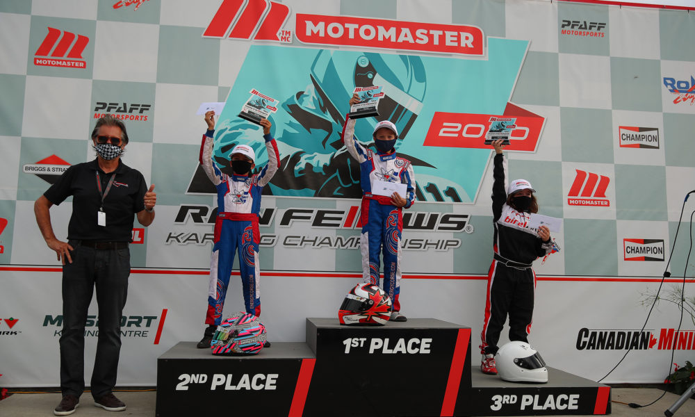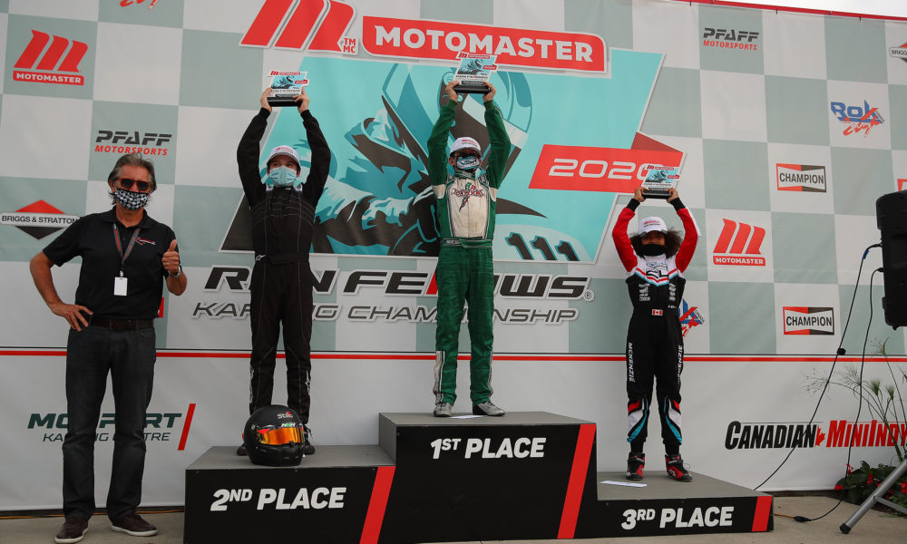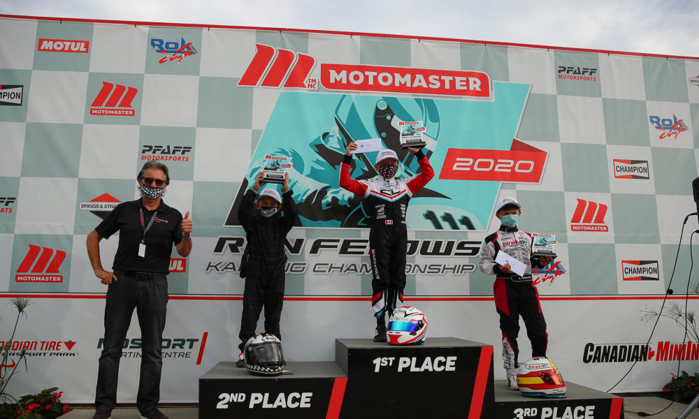 The first day of competition for the 2020 MotoMaster Ron Fellows Karting Championship is in the books following a great day of competition at the Mosport Karting Centre. The anticipation for this race had been building for months as the COVID-19 Pandemic delayed the start of the season for one of Ontario’s regional karting programs. Under sunny skies and very hot temperatures, a great race day was run with nine categories taking the track.