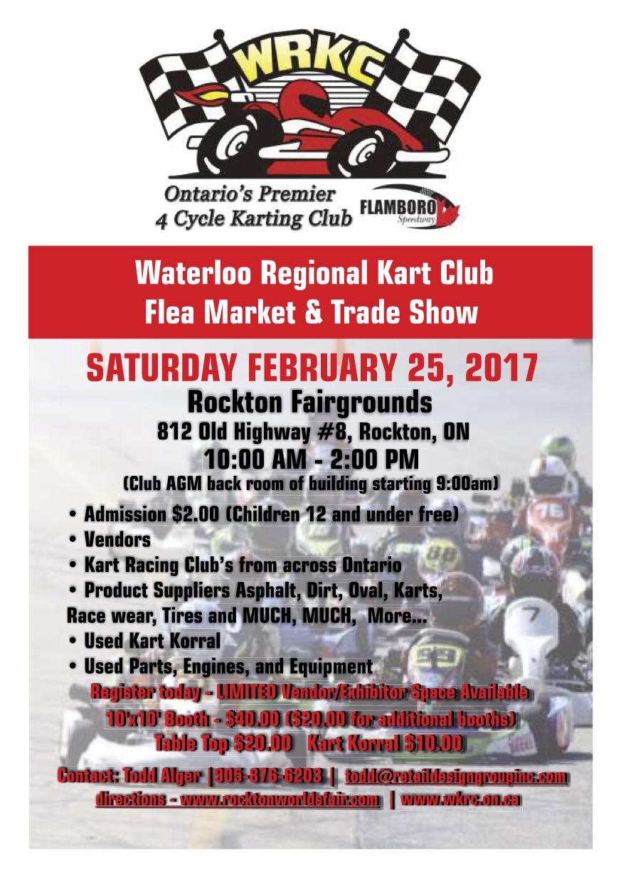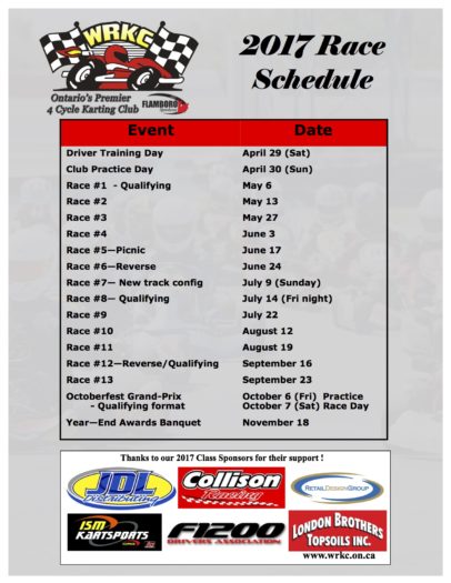 The Waterloo Regional Kart Club would like to welcome everyone to the start of our 36th year as an organized Kart Club for the 2017 season. WRKC has spent the off season working with our surrounding kart clubs to lock down their 2017 schedule while ensuring the least amount of overlapping events with our fellow kart clubs.