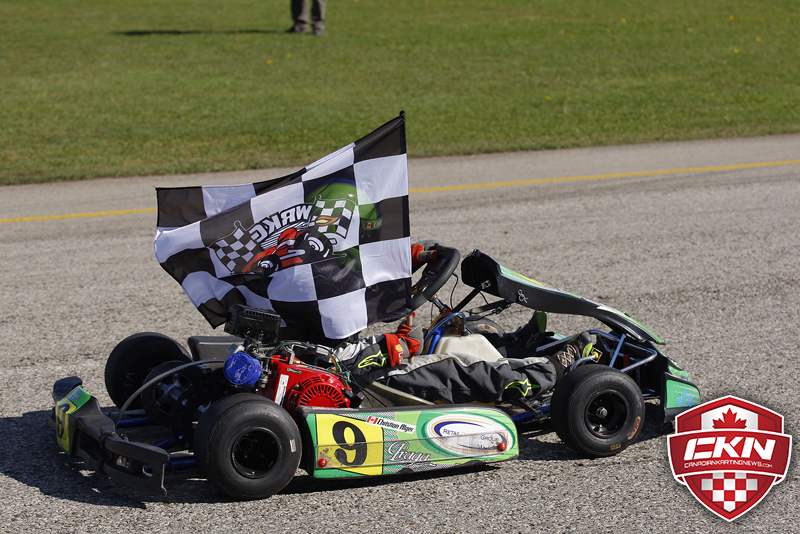 25 karts lined up in Senior Lite making it the largest class on hand for the day. Can-Am Midgets racer Adam Racine claimed the win in his first race back in a go-kart this year after a red flag ended the race a few laps early. The red flag came after early race leader Stephen Murdoch attempted to repass Racine for the lead in corner one, but contact saw him flip up and over Racine bringing the race to a halt. Murdoch walked away from the incident unharmed while David Miller and Ryan Brutzki stepped up onto the podium with Racine.